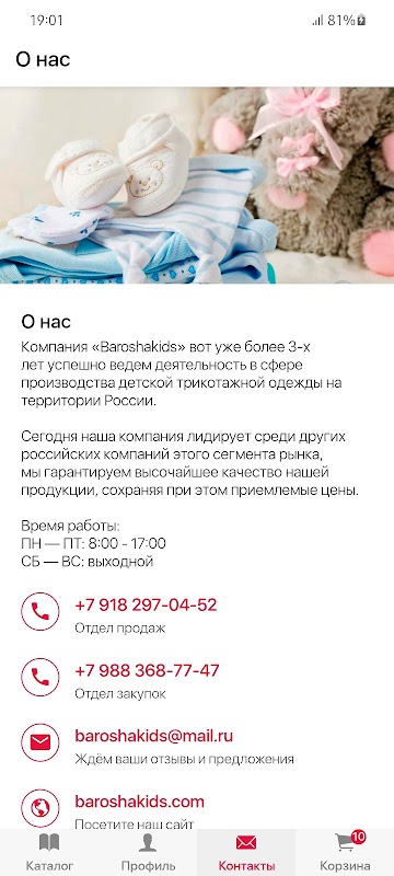 Торгово-производственная Компания «Baroshakids» рада приветствовать Вас в своём мобильном приложении. Мы вот уже более 3-х лет успешно ведем деятельность в сфере производства детской трикотажной одежды на территории России.