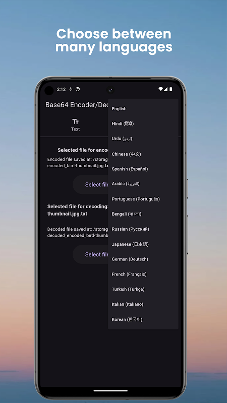 Tải xuống ngay! Tải ứng dụng Bộ mã hóa/Giải mã Base64 ngay hôm nay và đơn giản hóa các tác vụ mã hóa và giải mã dữ liệu của bạn. Cho dù bạn là nhà phát triển, sinh viên hay chỉ muốn quản lý các tệp của mình một cách an toàn thì ứng dụng này là giải pháp hoàn hảo cho bạn.