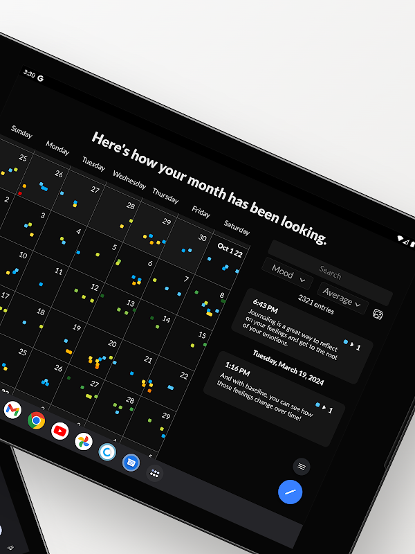 Hiểu những gì bạn đang cảm thấy và lý do tại sao thường khó hơn mức cần thiết. cơ sở là ở đây để giúp đỡ. Bằng cách cung cấp cho bạn một cách dễ dàng, dễ dàng để ghi nhật ký và theo dõi tâm trạng của bạn, cơ sở cung cấp cho bạn cơ hội dễ dàng để viết và suy ngẫm về những gì bạn đang cảm thấy trong suốt cả ngày. Cùng với thời gian, bạn sẽ bắt đầu hiểu bản thân và bộ não của mình hơn.