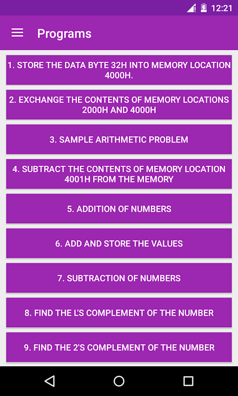 This application contains 48 basic application programs for 8085 microprocessor. The codes in this application are READY TO BAKE. The programs are very helpful for placements.