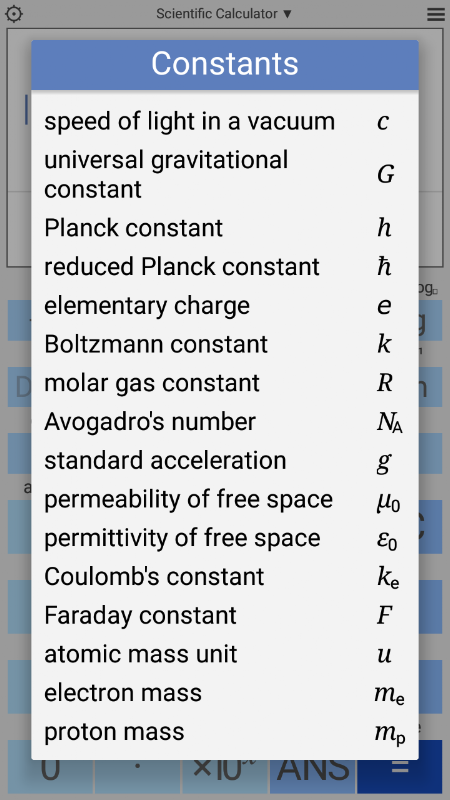 • 26 scientific constants.