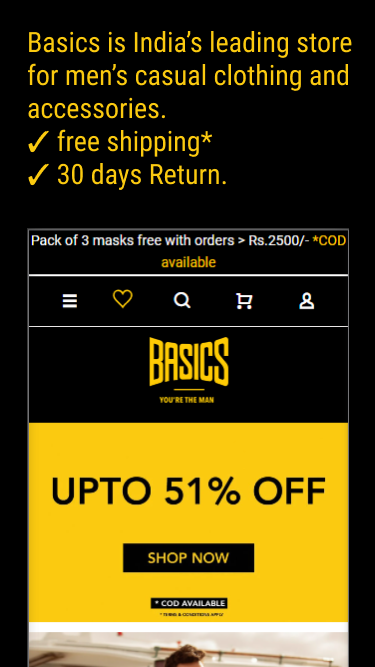 Basics là cửa hàng hàng đầu của Ấn Độ về quần áo và phụ kiện nam giới.