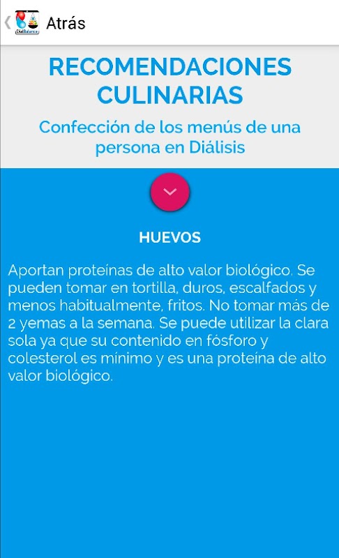 Contiene un catálogo con más de 500 alimentos y platos donde podrá consultar las cantidades de sodio, fósforo, potasio y agua que va a ingerir en función de la cantidad. Esto le será muy útil como ayuda a la hora de conocer qué alimentos puede tomar y cuáles evitar.