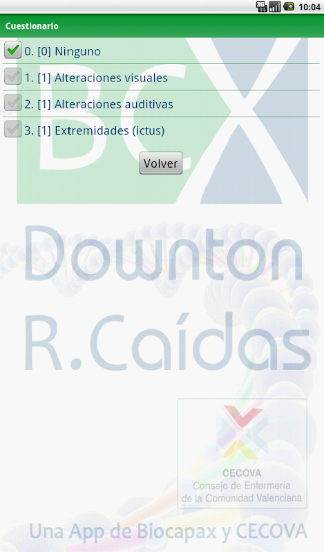IMPORTANTE: BCX DOWNTON RIESGO DE CAÍDASes una aplicación pensada para su utilización por personal sanitario. Cualquier mal uso o uso inadecuado de ella no es responsabilidad de los creadores. El profesional siempre deberá verificar la corrección de la valoración generada por la aplicación que es meramente orientativa y basada en el índice original.