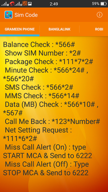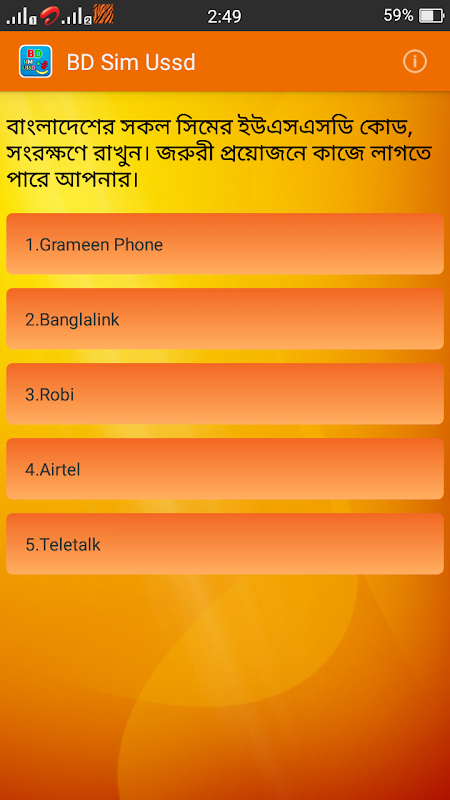 All Bangladeshi essential sim ussd code in one app, this app helps you to access your mobile sim operator more service.