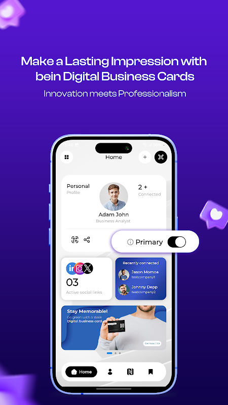 Tạo kết nối ngay lập tức và để lại ấn tượng lâu dài với BeinMy Network, ứng dụng tất cả trong một để tạo, chia sẻ và quản lý danh thiếp kỹ thuật số. Hãy bỏ giấy tờ và sử dụng kỹ thuật số để giới thiệu thương hiệu của bạn một cách phong cách và tiện lợi!