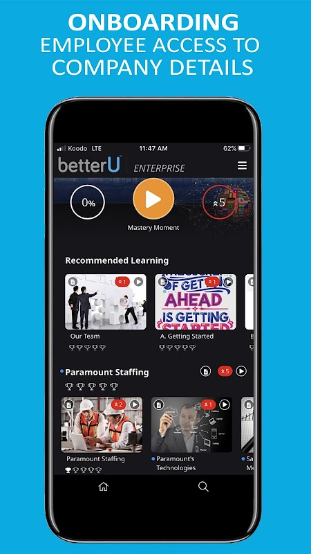This is betterU’s learning mobile app called Ready-To-Go, which is supported by our backend global technology, education, and assessment providers.
