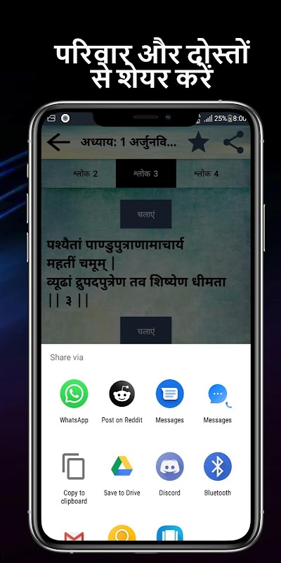 * Share feature to easily send your favorite Bhagavad Gita shloka / verse to your friends and Family