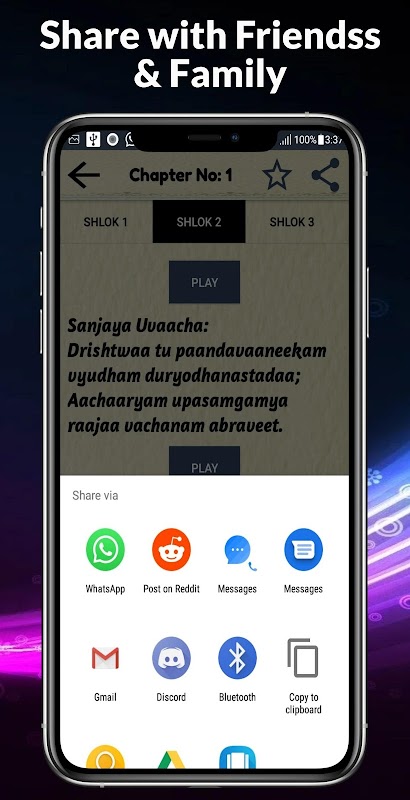 * Share feature to easily send your favorite Bhagavad Gita shloka / verse to your friends and Family