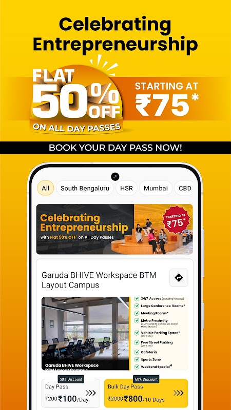 Tăng năng suất của bạn, khám phá không gian làm việc chung lý tưởng ở Bengaluru, Ấn Độ hoặc bất cứ nơi nào mà hành trình nghề nghiệp của bạn đưa bạn đến. Tải xuống ứng dụng BHIVE ngay hôm nay để tiếp cận không gian làm việc linh hoạt, đầy cảm hứng phù hợp với thành công của bạn.