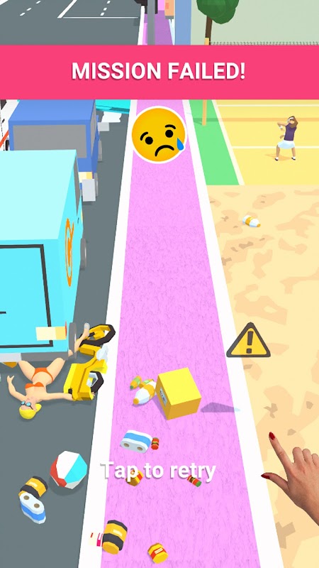 Thành phố đông đúc và phức tạp. Bạn phải luôn tập trung vào con đường của mình và dừng lại bất cứ khi nào cần. Lần tới, bạn có thể phải đối mặt với một con chó, một quả bóng hoặc một bà già.