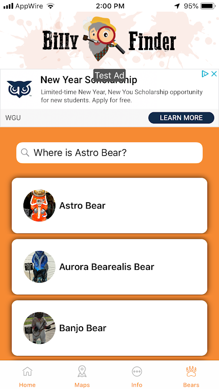 Các ứng dụng di động Billy Finder là một hướng dẫn cung cấp thông tin và hữu ích cho người sử dụng trong Pikeville, lễ hội hàng năm Kentucky của Hillbilly Day.