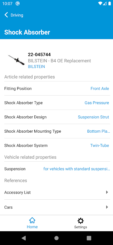 Các ứng dụng sẽ đưa bạn trực tiếp đến bài viết mà bạn muốn. Chỉ cần chọn một chiếc xe nhà sản xuất, dòng sản phẩm, chủng loại xe và thành phần, và bạn ngay lập tức sẽ được hiển thị các kết quả tương ứng từ khoảng Bilstein.