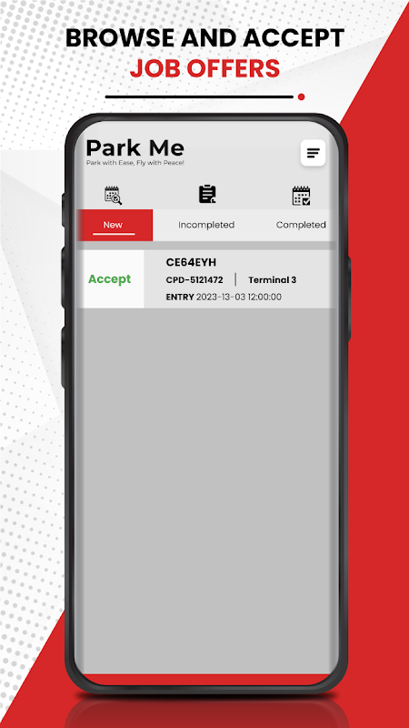 Park Me giúp tài xế quản lý công việc dễ dàng hơn bằng cách đơn giản hóa quy trình. Khi người lái xe chấp nhận lời đề nghị, nhiệm vụ sẽ được đánh dấu là chưa hoàn thành, nhắc họ nhập thông tin quan trọng như số xe, kiểu xe, số điện thoại và các chi tiết cơ bản khác. Điều này không chỉ đảm bảo thông tin chuyến đi chính xác mà còn liên lạc hiệu quả và trải nghiệm ứng dụng vận tải thân thiện với người dùng.