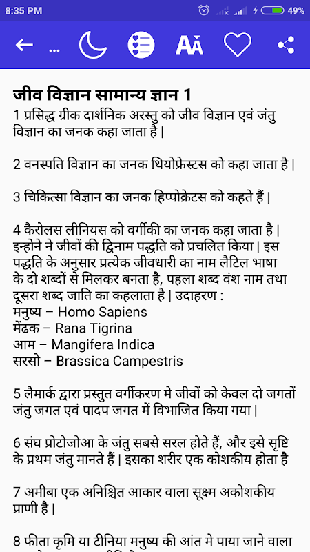 This app has general knowledge questions and answers of Biology in Hindi language.