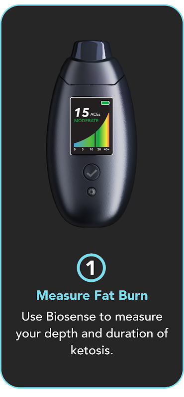 Trình theo dõi mức độ đốt cháy chất béo Biosense (xeton) cấp y tế cung cấp cho bạn bức tranh đầy đủ về mức độ đốt cháy chất béo thay đổi như thế nào trong ngày dựa trên chế độ ăn uống, hoạt động và nhịn ăn.
