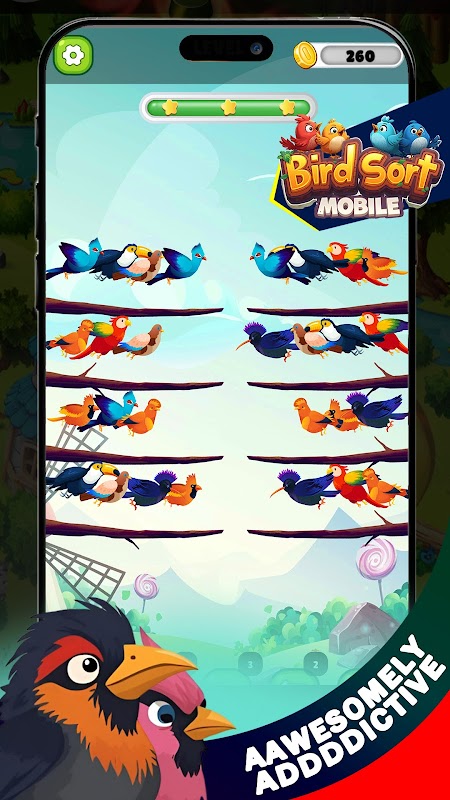 Ban đầu trò chơi khá dễ, nhưng càng về sau, các câu đố càng trở nên khó hơn, thử thách khả năng logic, tập trung và giải quyết vấn đề của bạn. Với hình ảnh nhẹ nhàng và hiệu ứng động chim quyến rũ, Bird Sort Mobile là sự kết hợp hoàn hảo giữa thư giãn và rèn luyện trí não.