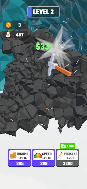 Bắt đầu hành trình của bạn với một chiếc cuốc chim cơ bản và chạm vào để kiếm được vài Satoshi đầu tiên. Khi khai thác, bạn sẽ tích lũy được Bitcoin, sau đó bạn có thể tái đầu tư để nâng cấp các công cụ khai thác của mình. Mỗi lần nâng cấp sẽ tăng hiệu quả của bạn, cho phép bạn đục những tảng đá cứng đầu đó nhanh hơn và thu về nhiều tiền điện tử hơn.