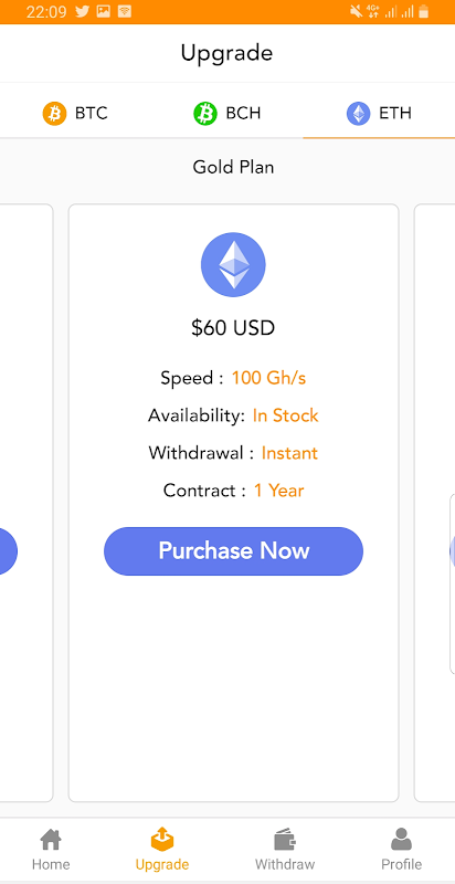 You can also upgrade a plan for a good profit, start mining and get daily returns using our cloud mining service. We are providing the best plans among the competitors within average investment because this is an earning opportunity for all the people either they are rich or destitute. Passive earning is every person's dream.