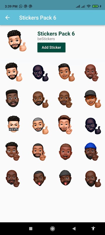 - Thêm gói người da đen WAStickerApps yêu thích của bạn vào Whatsapp của bạn