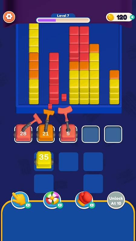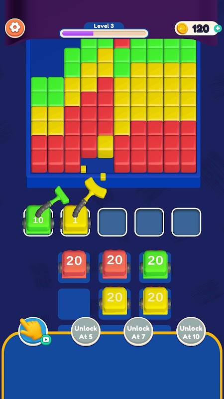 Bắn các khối màu sắc để xóa khối kẹt và tạo ra một vụ nổ khối lớn bằng búa