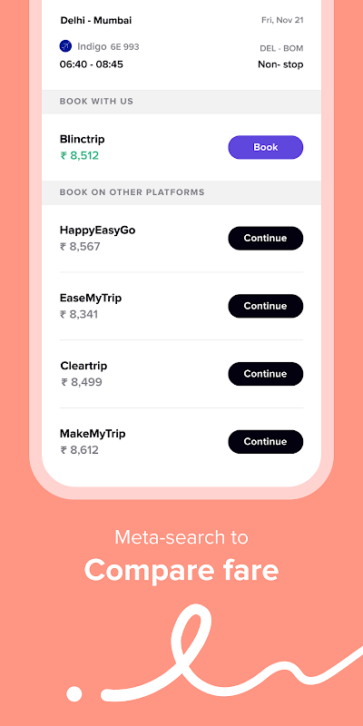 Blinctrip là một ứng dụng đặt chuyến bay được thiết kế để giúp bạn có một chuyến đi tuyệt vời mỗi khi bạn đi du lịch. Ứng dụng này cho phép bạn đặt chuyến đi lý tưởng và quản lý việc đặt vé máy bay của mình. Trước khi bạn đặt các chuyến bay tiết kiệm chi phí, ứng dụng hỗ trợ du lịch của chúng tôi sẽ hiển thị hành trình tận nơi và trải nghiệm trên chuyến bay của bạn. Bạn có thể so sánh giá vé Blinctrip với các ứng dụng đặt vé phổ biến khác ở Ấn Độ để tìm được vé máy bay rẻ nhất.