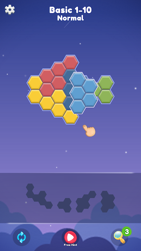 Block Hexa Puzzle là trò chơi mà bạn phải hoàn thành câu đố bằng cách kéo các khối.