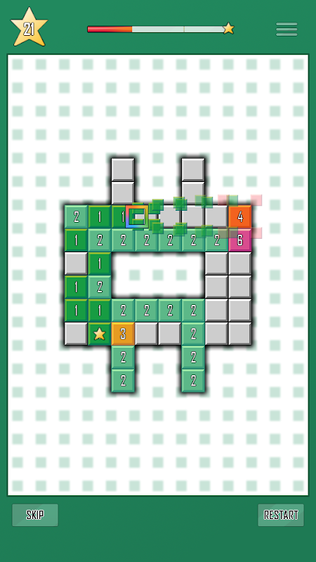 Trượt qua từng câu đố để giảm tất cả các khối xuống còn 0 và để có thêm thử thách, hãy xem bạn có thể hoàn thành khối sao thưởng không!