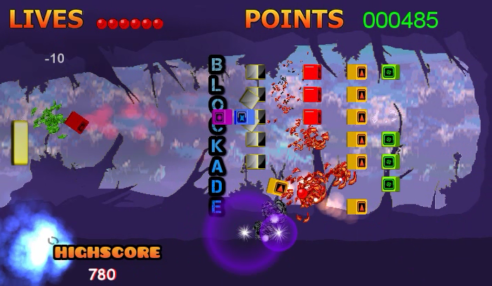 Blocker this game has 3D looking blocks that move and rotate, the black/gray blocks can form a blockade this can be good for points depending on which side the ball is.