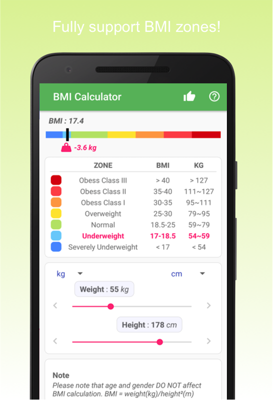 2. Hỗ trợ tất cả các vùng cân BMI (tức là, Obess Class I / II / III, Thừa cân, Bình thường, Thiếu cân, Thiếu cân nặng)