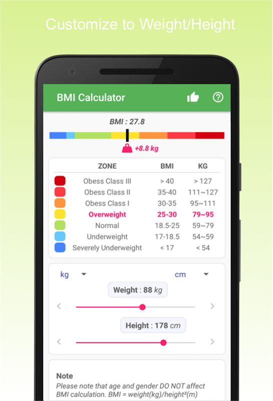 1. Tự động tính toán vùng BMI của bạn để giảm cân tốt nhất
