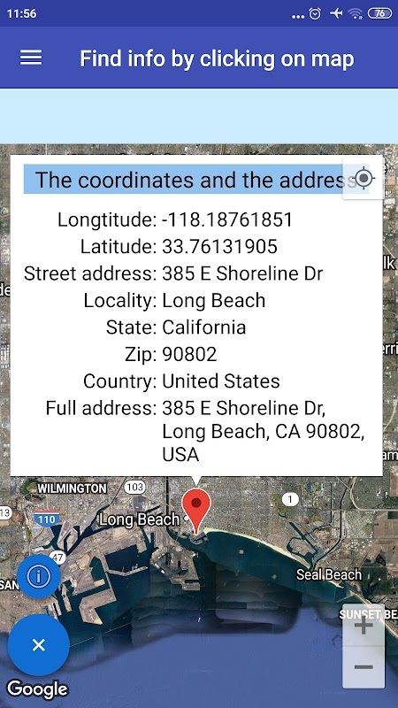 2. Tìm tọa độ bằng cách nhấp vào bản đồ. Nhấp vào một nơi nào đó trên bản đồ và một điểm đánh dấu sẽ được hiển thị. Nhấp vào điểm đánh dấu và xem tọa độ và địa chỉ đầy đủ.