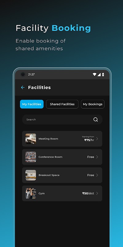 2. Đặt cơ sở dễ dàng: Đặt các không gian chung như phòng hội nghị & phòng họp chỉ bằng vài cú nhấp chuột.