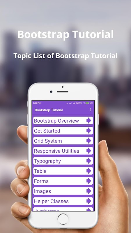 Bootstrap Tutorial app collections of Categories are below and provide All Topic Like,