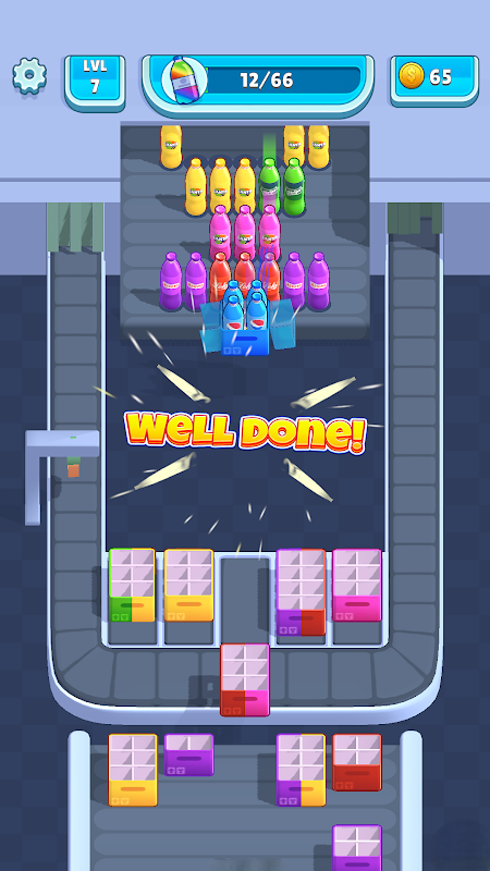 Dây chuyền phân loại rất lộn xộn, và các chai đủ màu sắc bị lẫn lộn. Chúng tôi cần một bộ óc nhạy bén như bạn để đảm nhiệm và khôi phục trật tự. Là người quản lý sắp xếp mới, nhiệm vụ của bạn là đảm bảo mọi chai đều được xếp vào thùng cùng màu! Khi các chai được chuyển đến nhà máy nạp đầy này, bạn phải di chuyển và đặt các thùng một cách chiến lược để đảm bảo mỗi chai được đặt đúng vị trí và thoát khỏi tình trạng kẹt chai. Bạn không có quyền kiểm soát trực tiếp. Hãy lên kế hoạch cẩn thận cho từng bước di chuyển để đưa chai ra ngoài! Trò chơi có hàng trăm màn chơi, mỗi màn chơi đều có những thử thách độc đáo, câu đố màu sắc và độ khó tăng dần, khiến bạn bị cuốn hút hàng giờ liền trong trò chơi sắp xếp thú vị này.