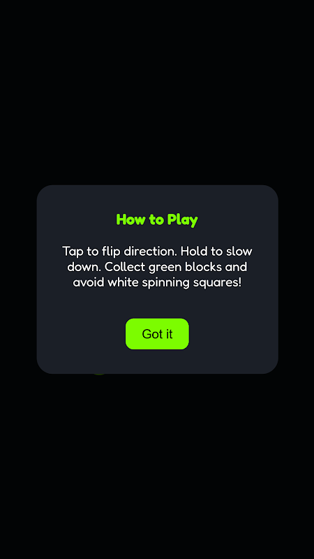 Bước vào một thế giới đẹp mắt, nhịp độ nhanh, nơi thời gian là tất cả. Nhấn để chuyển hướng nảy của bạn và giữ để kích hoạt chuyển động chậm. Né các ô vuông xoay tròn, thu thập các vòng tròn phát sáng nhỏ và xem bạn có thể đi được bao xa trong thử thách vô tận, siêu giản dị này.