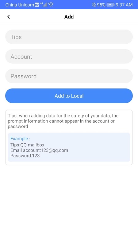 Secondly, because of no server to save your private information, so please export your ciphered text as a QR code image to somewhere to backup your account. if you lose it or delete app without backup of this account, no one can find your account and password.It totally decentralized application, fully block chain ,completely safe, even you yourself can't steal this when you lost this ciphered text or forget the password to decrypt this ciphered text, so be careful about this QR code image. Also don't be worried too much about this QR code image, even someone steal this image, he can't decrypt you account expect he also get your password which is no place to be stored. The password only is stored in your brain, so don't forget password of this application.Do you known the story about someone lost his bitcoin account?
