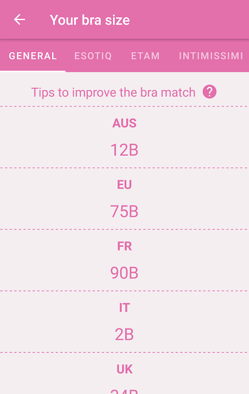 Ứng dụng cũng có tính năng đo áo ngực cho Esotiq, Etam, Intimissimi, Oysho và Triumph dựa trên biểu đồ kích thước chính thức.