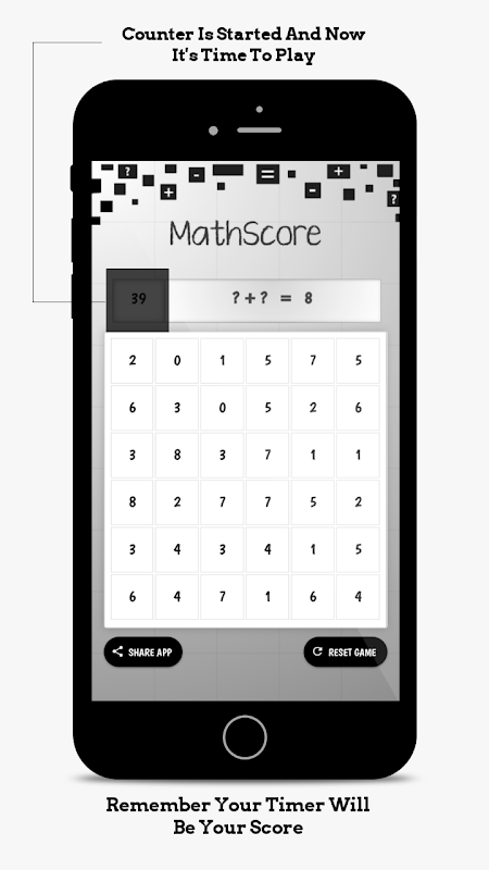MathScore is the app regarding to play with the mathematical calculation like summation and subtraction with specific time limit and share your score with your friends and challenge them to break your records.