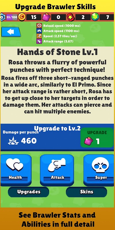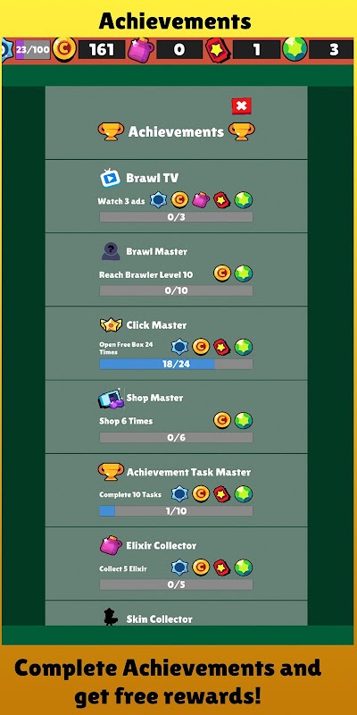 Thu thập Tất cả các Brawlers, nâng cấp chỉ số của họ, thu thập da thú vị, lập thành tích để nhận phần thưởng và hơn thế nữa!