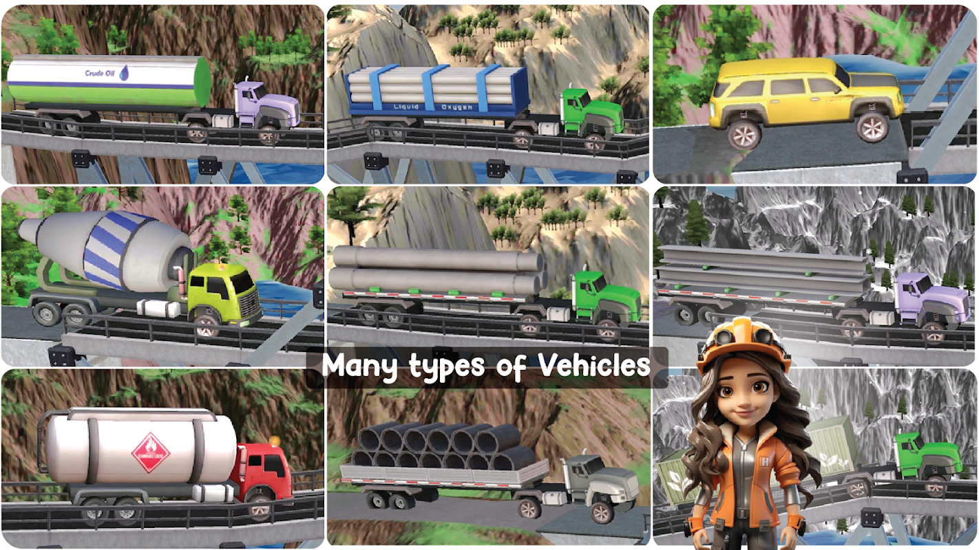 - Sử dụng giao diện 2D đơn giản để dễ dàng lập kế hoạch và chế độ 3D để quan sát ô tô và xe tải khi chúng đi qua những cây cầu bạn xây dựng.