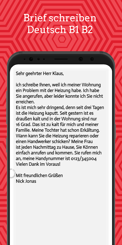 Diese App wird Ihnen bei der B2-Prüfung sehr helfen. Deutsch ist eine der logischsten Sprachen, diese App gibt Ihnen eine gute Vorstellung davon, wie man Briefe schreibt. Wenn Sie Tóm tắt schreiben Deutsch a1, Tóm tắt schreiben Deutsch a2, Tóm tắt schreiben Deutsch b2 gelernt haben, wird Ihnen diese Anwendung sehr helfen.