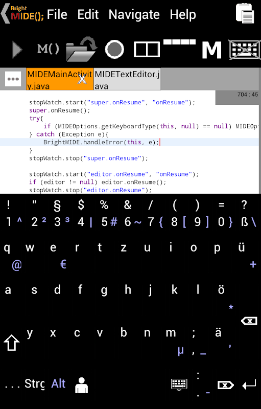 Bright M IDE is a full mobile integrated development environment (IDE) for Android devices. With this app you can create, modify and build Android apps on your Android tablet or phone.