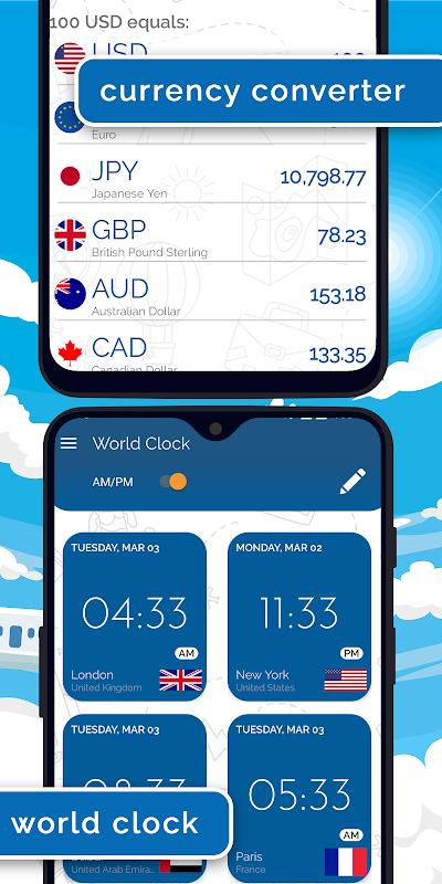 - Đồng hồ thế giới: Thiết lập đồng hồ thế giới với lựa chọn thành phố của bạn.