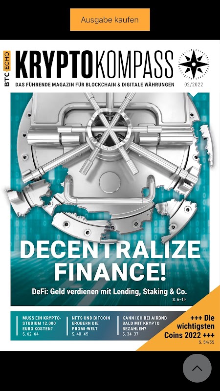 BTC-ECHO cung cấp thông tin hàng ngày về những phát triển quan trọng nhất trên thị trường Bitcoin và blockchain. Trong ứng dụng, bạn nhận được những tin tức nóng hổi quan trọng nhất trực tiếp trên điện thoại thông minh của mình và đồng thời bạn có tùy chọn đăng ký tạp chí hàng tháng "Kryptokompass" một cách thuận tiện.