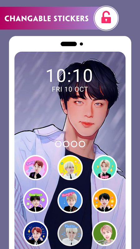 Bạn có tưởng tượng, mỗi sáng thức dậy, bạn mở điện thoại ra và hình ảnh trước mặt bạn là một khóa màn hình đầy dễ thương của Jimin, nụ cười tỏa sáng của V, hay vẻ mặt cool ngầu của Rapmon, khuôn mặt ngọt ngào của Suga, vui nhộn cùng J-Hope hay gương mặt worldwide handsome của Jin. Thật là tuyệt vời phải không nào? Nếu bạn đã sở hữu cho mình BTS Wallpaper, BTS Game, hay BTS Messenger, thì BTS Lockscreen sẽ là một ứng dụng cực kì hay ho và ấn tượng. Khóa màn hình của bạn sẽ là chất nhất, bạn vừa có một “chiếc khóa” an toàn, vừa tận hưởng cảm giác gần bên các thành viên BTS.