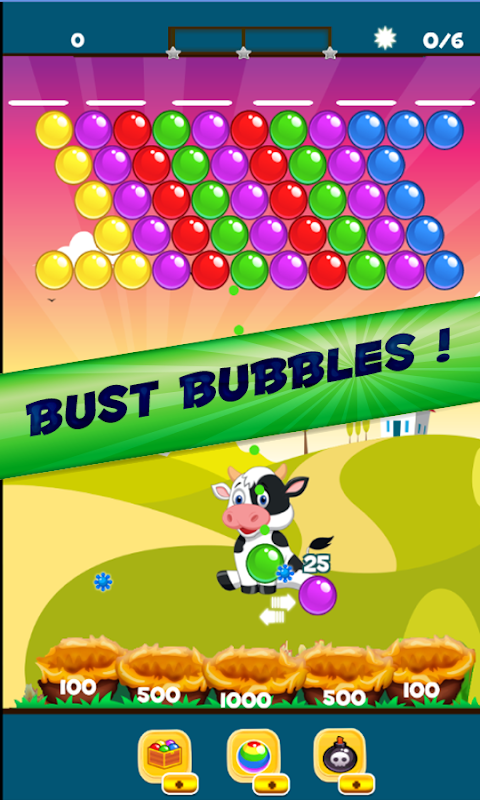 Bubble cow is a free classic bubble shooting game .You need to shoot and pop bubbles of 3 or more matching colors in order to win the level and save the little cows.