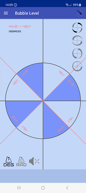 🔄 Đơn vị góc: 'Mức bong bóng' không giới hạn bạn ở một đơn vị đo lường duy nhất. Chọn giữa độ và radian, đảm bảo bạn có được sự linh hoạt cần thiết cho bất kỳ dự án nào.