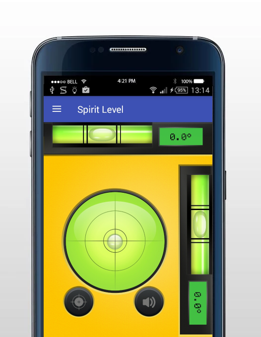Bubble & Spirit Level is meant to measure the angle between the horizon and your surface. You can see quickly if the surface of the table you are looking at is fully horizontal or skewed. Put the phone against any surface, and the Level will tell you whether it is sloped, and if so, how much and in what direction. Results are presented in grades, with an up to 1 decimal number precision. This clinometer app is great for setting up telescopes, cameras, construction details and more. It is now possible to level everything perfectly with just your smartphone. You can use both one-dimensional axis to measure horizontal or vertical bias, or you can use the central two-dimensional bubble ring to assess the direction of a tilt. It is possible to recalibrate the app and use your current surface as a base. There is also a sound alarm that will engage when your optimal position is achieved - 0° angle notification. Please enjoy using our application and send your comments to us (if you are so inclined).