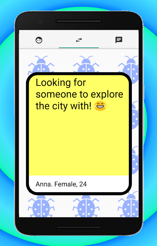 Simply write down your "Bug", which is the activity you want to do with your BuddyBug, and wait until someone swipes right on your Bug. In the meantime, swipe right or left on other people's bugs.